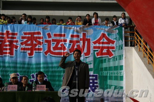 4月18日下午,运动会圆满结束。闭幕式上,总裁判长陈毕栋宣布了竞赛团体成绩及风尚奖评选结果,校领导为获奖团体颁发了锦旗。副校长郑伟强致闭幕词作重要讲话。他说,在本次运动会中,全体裁判员始终以公开、公正、公平的作风,坚持标准,认真裁决。全体工作人员团结协作,主动服务,做了大量工作,确保了本次运动会的顺利进行。全体运动员以抖擞的精神,顽强拼搏,挑战自我,充分展现了联大人积极向上、不畏困难、乐观进取的精神风貌。他说,本次运动会必将推动Beat365体育教学和体育工作的深入开展,也必将鼓舞我们以“更高、更快、更强”的奥运精神,全力投身于学校的改革发展中,为推进学校各项事业又好又快发展,实现升本目标而继续努力拼搏。