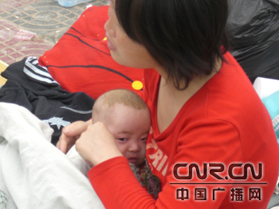 地震过后孩子在母亲的怀抱中
