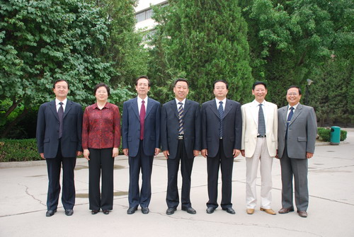由左至右:副校长郑伟强 副校长曹晓琴 副校长马志荣 党委书记李志强 校 长史百战 副校长王安民 副校长田健中