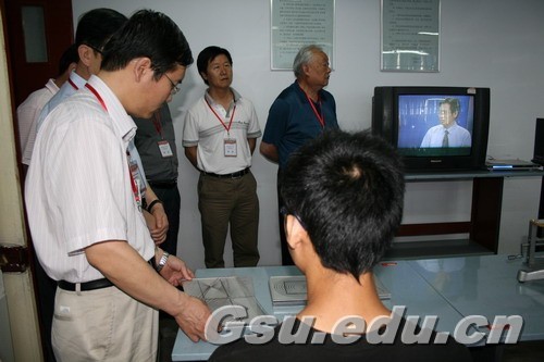 专家考察外语学院展室
