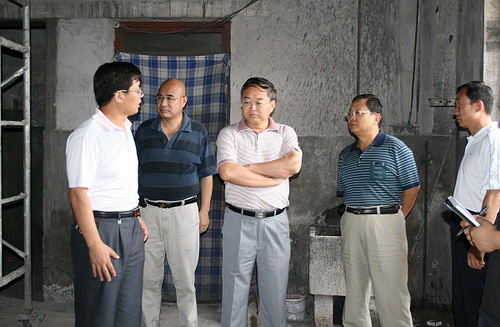 2009年8月4日,校长史百战、副校长田建中视察了C号楼改造工地、学生浴池和锅炉房改造工地、综合服务楼工地、新校区1-3#教学楼建设工地,认真察看工程进展情况,详细了解建设过程中遇到的问题和困难,亲切慰问酷暑下仍坚守在建设工程一线的广大工程建设者们。