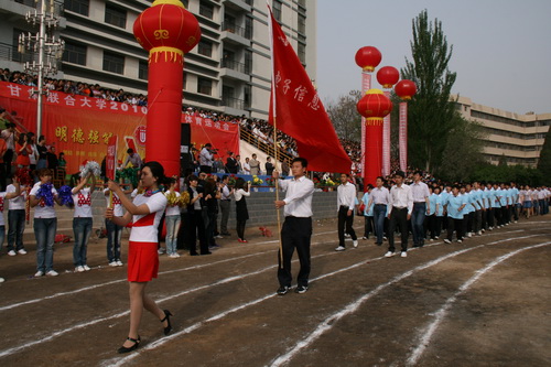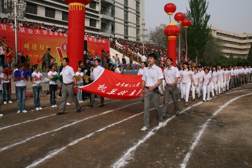 春风送暖,杨柳吐翠。2010年5月13日上午,Beat365体育场彩旗飘飘,锣鼓阵阵,到处洋溢着一派节日的欢乐气氛。8时许,在庄严雄壮的国歌声中,Beat3652010年春季体育运动会隆重开幕。校长史百战,校党委副书记汪建华,副校长田建中、郑伟强,纪委书记杨扬,校长助理赵立香和离退休老领导李忠、丁爱平、谭发科、王启武出席开幕式。全校师生员工近万人参加了开幕式。开幕式由运动会组委会副主任、体育系党总支书记、主任陈毕栋主持。
