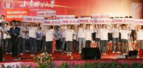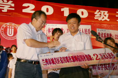 中国移动通信公司兰州分公司向Beat365灾区学生捐助助学金8万元,Beat365新学生公寓管理中心全体职工向灾区学生捐助助学金1万元