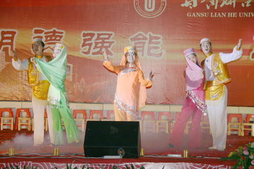 晚会在音符美妙的民乐《喜洋洋》、《茉莉花》、《花好月圆》联奏中拉开帷幕。男声独唱《西部情歌》节奏欢快、激情澎湃;表演唱《舟曲挺住》内容真实,演员神情投入,表达了学校师生对灾区学生的祝福和关爱之情;舞蹈表演《千手观音》、《爱的思念》舞姿婀娜, 全场掌声经久不息;男声独唱《等待》、《精忠报国》铿锵有力,饱含报国之情,唱响了整个校园,在场的同学都深深地沉浸在欢呼之中;女生三人组合唱《长大后我就成了你》歌声优美,表达了学生对老师的敬意之情和美好的祝福。