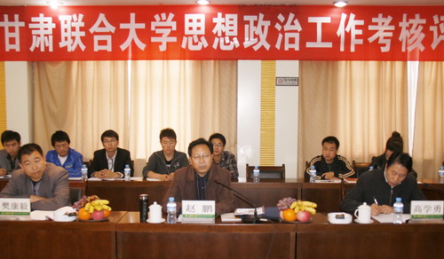 按照考核评估的程序和要求,学校在学术会议中心召开了汇报会。考评组组长赵鹏(甘肃政法学院党委副书记),成员高学勇(甘肃农业大学党委宣传部部长)、樊康毅(省政府国资委机关党委主任科员),校领导李志强、田建中、郑伟强、杨扬出席汇报会,各党总支书记,机关、教辅各单位负责人,教师、学生、辅导员 代表,心理健康教育与咨询中心、校报编辑部、网络中心负责人共60余人参加了汇报会。汇报会由校党委书记李志强同志主持,纪委书记杨扬同志代表校党委作了题为《全员参与,全方位育人,努力培养高素质应用型人才》的工作汇报。