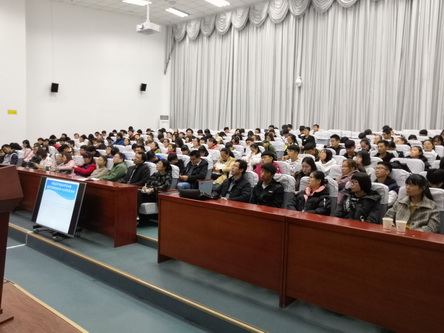 11月15日下午,化工学院在综合楼学术报告厅举行学术报告会,化工学院来守军博士、师海雄博士、杨全录博士分别作题为《基于行业需求的专业知识能力培养分析》、《以吩嗪为荧光团的离子识别受体的设计合成及性能研究》和《负载型催化剂在偶联反应中的应用》的学术报告。报告会由化工学院院长展惠英教授主持,化工学院教师、学生共200余人参加了报告会。