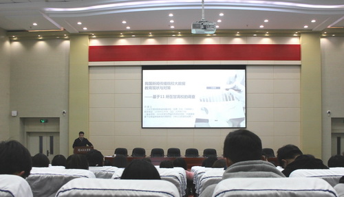 12月13日晚,新闻传播学院教授弥建立在学术报告厅为学院学生作题为《我国新闻传播院校大数据教育的现状与对策》的学术报告。