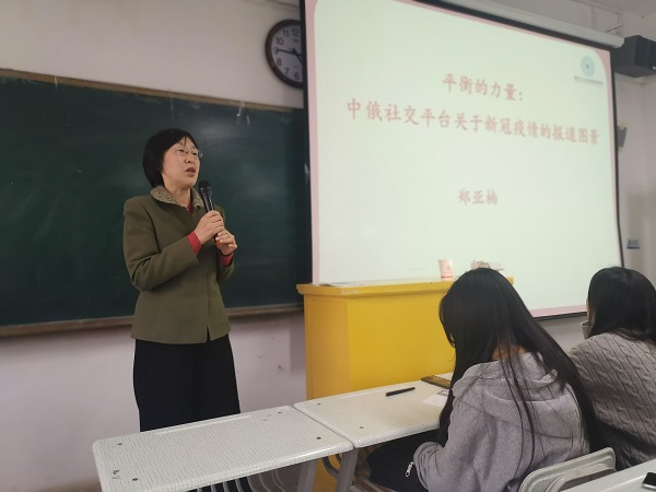 为加强学院与各高校间的交流,着力培育具有坚定理想信念、高尚家国情怀、扎实专业知识、宽广国际视野的新闻传播事业后备人才。2020年10月26日,黑龙江大学郑亚楠教授为我院学生做了题为《平衡的力量:中俄社交平台关于新冠疫情的报道图景》的专题讲座。