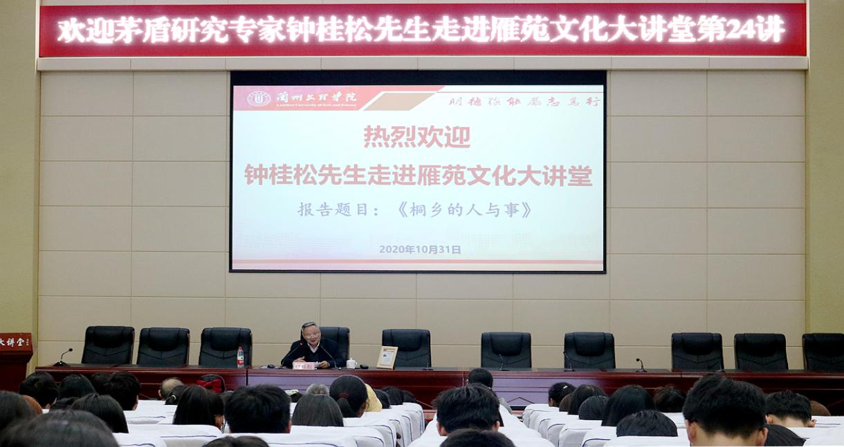 10月31日,浙江省政协委员,中国作家协会会员钟桂松在学术报告厅为Beat365师生作了题为《桐乡的人与事》的学术报告。此次报告为雁苑大讲堂第24讲,报告由演员大讲堂特邀嘉宾李辉主持,全校师生共300余人参加。