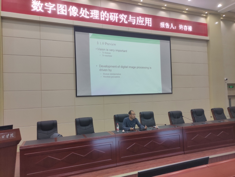 报告会上,许存禄介绍到,数字图像处理是指使用数字计算机来加工、处理图像的一种技术。随后又深入介绍了数字图像处理的研究与各类应用场景、数字图像处理的现实意义以及其未来发展,他讲道:人类接收、表达、传递信息相对全面便捷的方式主要源于图像,随着计算机的迅猛发展,数字图像处理的应用无处不在,比如在遥感航空航天方面,生物医学工程方面,通信工程方面,工业和工程方面,军事方面等。许教授从数字图像处理的研究现状和内容出发,总结了数字图像处理的应用,并提出了数字图像处理的发展。许教授简洁而不失幽默的讲解不单是便于同学们对数字图像处理技术的应用有更多的了解,更是激发了同学们对数字图像处理研究的热情和兴趣。报告会现场学习氛围浓厚,听讲学生们积极与许教授进行交流互动,并提出对数字图像处理在今后的应用等方面的一系列问题,许教授做出了详细的解答,加深了学生们对数字图像处理的了解。
