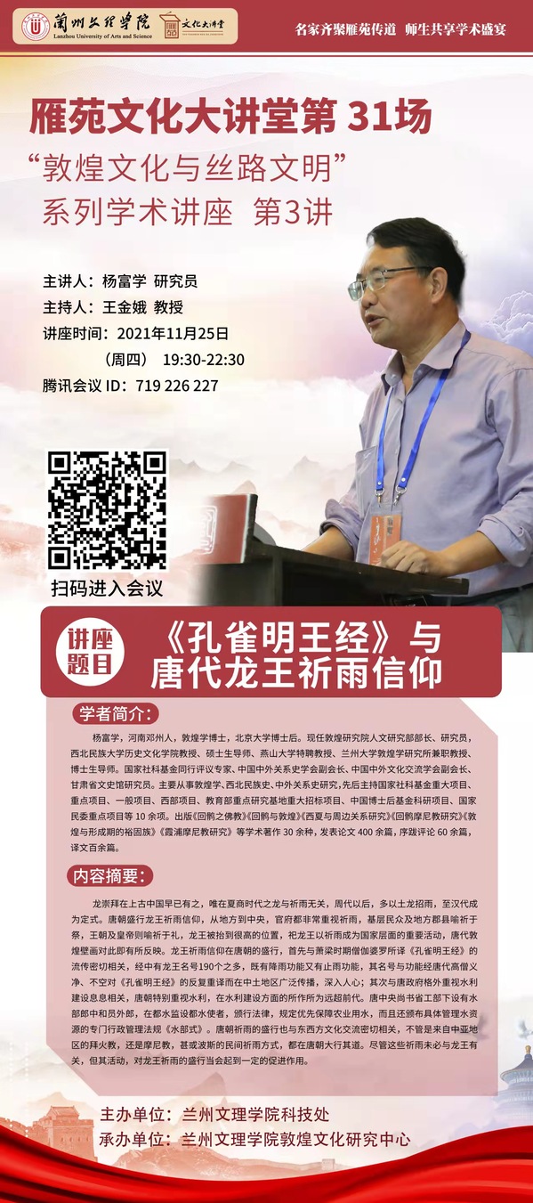 雁苑文化大讲堂——“敦煌文化与丝路文明”主题系列学术讲座第3讲(总第31场)