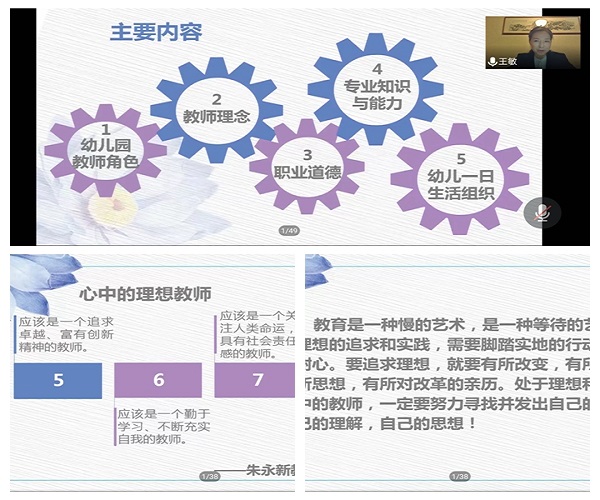 幼儿园需要什么样的老师?孩子喜欢什么样的老师?家长放心什么样的老师?社会认同什么样的教师?这一系列问题是学前教育领域研究及学前教育实践永恒的话题。为满足我院学前教育专业学生深入学习和强化实践中的需求,提升专业发展理念,建立学前教育研究意识,教育学院于11月30日晚邀请甘肃省军区昆仑幼儿园幼儿园园长王敏开展题为《幼儿园教师职业素养与能力培养》的专题讲座。学院党总支书记张莉、相关专业教师、学前教育专业学生在腾讯会议平台聆听讲座。讲座由副院长王成德教授主持。