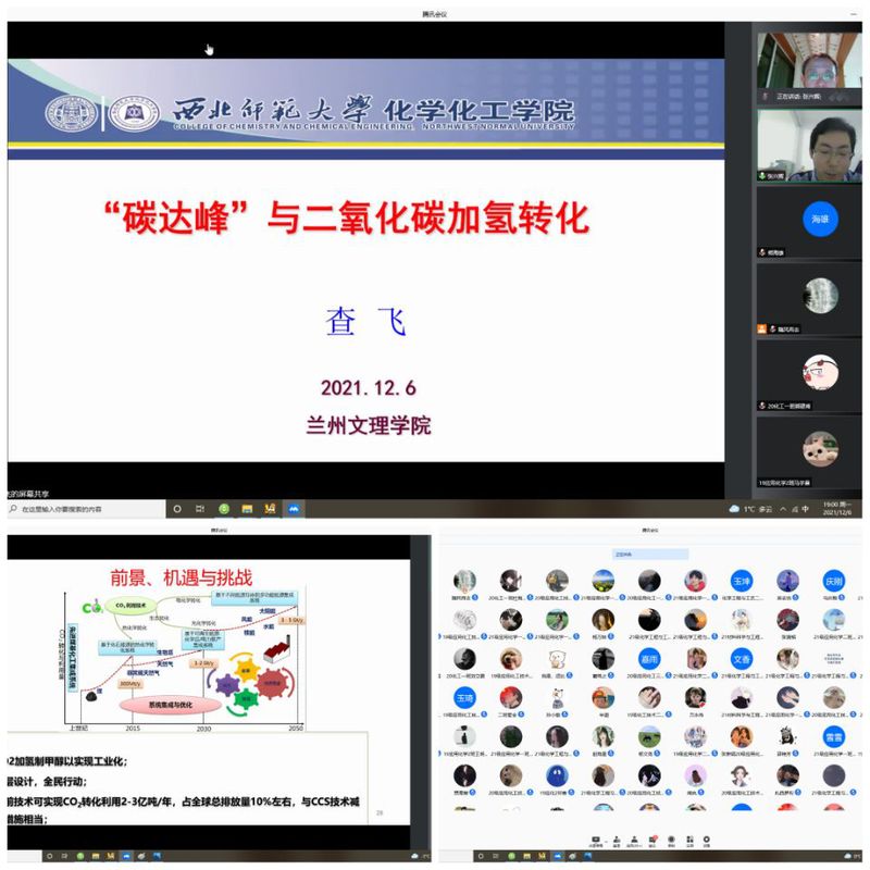 12月6日晚,化工学院特邀西北师范大学化学化工学院查飞教授作了题为《碳达峰与二氧化碳加氢转化》的热门学术报告,报告由化工学院院长张兴辉教授主持,学院全体师生聆听了报告。