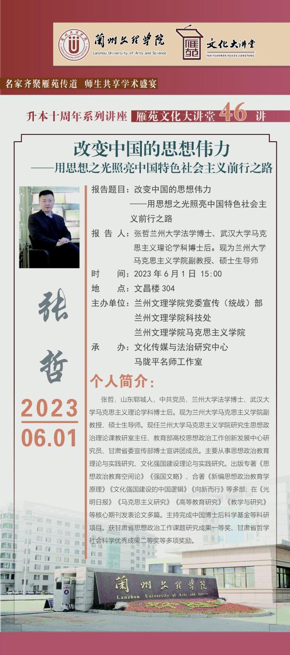 雁苑文化大讲堂——《改变中国的思想伟力——用思想之光照亮中国特色社会主义前行之路》讲座预告(总第46场)
