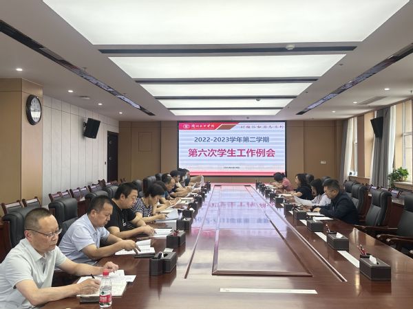6月28日下午,学校在文昌楼1218会议室召开2022-2023学年第二学期第六次学生工作例会。党委学生工作部(处)负责人、各二级学院分管学生工作副院长参加会议,会议由党委委员、副校长刘畅主持。