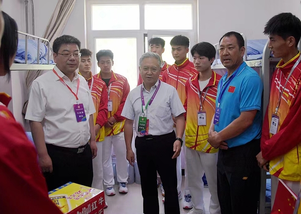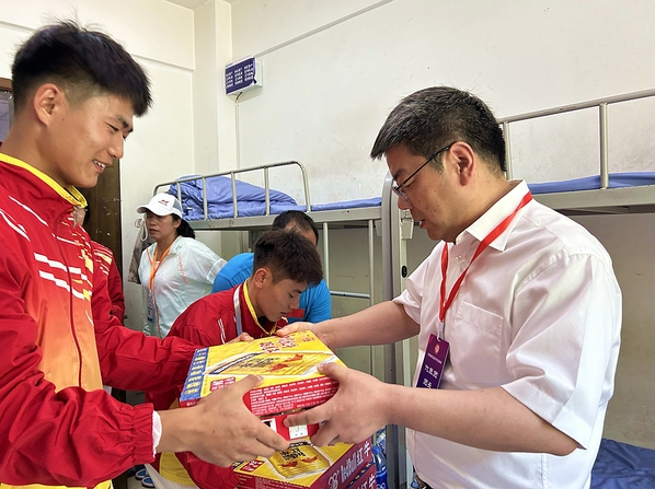 开幕式结束后,苟永平、张焱走进宿舍看望慰问Beat365参加比赛的教练员、运动员,对带队教师和运动员们的辛苦付出表示感谢,对运动员们已经斩获的荣誉表示祝贺和肯定!苟永平耐心询问了运动员参赛与生活情况,强调运动员们要听从领队和教练员的指挥安排,要将雁苑学子良好精神面貌充分展现出来,赛出应有水平,为学校添光争彩;张焱叮嘱大家在比赛期间一定要合理饮食、规律作息,实现运动成绩和精神文明双丰收。运动员们备受鼓舞,纷纷表示会以饱满的热情和高扬的斗志整装待发,为学校争光。
