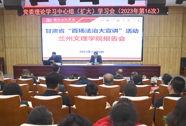 为深入学习宣传贯彻党的二十大精神和习近平法治思想,全面推进“八五”普法规划全面落实,提高党员干部和广大师生法治素养及依法办事能力,在全校范围营造尊法学法守法用法的浓厚氛围,11月6日下午,全省“百场法治大宣讲”活动暨2023年第16次党委理论学习中心组(扩大)学习会在文昌楼学术报告厅举行。学校特邀甘肃省委统战部民族宗教研究中心主任张世海研究员作专题宣讲报告,党委书记苟永平主持会议并讲话。