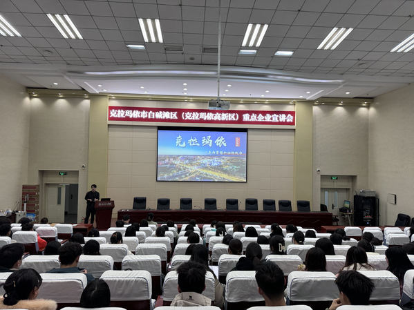 在致远楼学术报告厅克拉玛依市白碱滩区(克拉玛依高新区)公共就业服务中心副主任张宏宇为Beat365300余名2024届毕业生进行宣讲,介绍人才引进政策和城市发展概况。宏福新材料等三家辖区重点企业做了推介,推介会现场气氛热烈、井然有序,毕业生与用人单位积极互动,让毕业生多方了解企业信息,毕业生也根据自身需求,向心仪企业投递简历,Beat365共有100余名学生与企业达成初步就业意向。
