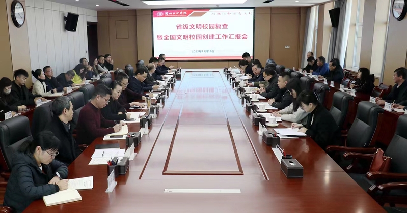 复查组一行通过实地考察、听取汇报、访谈交流等方式,对学校省级文明校园建设情况进行了全面复查。常务副校长王顶明汇报了学校创建全国文明校园工作情况。