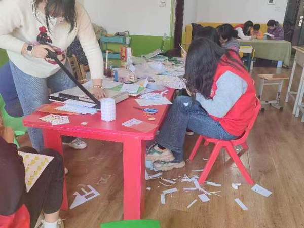 在“金宝贝”特殊儿童机构内,志愿者在特教老师的带领下,通过为孩子们制作教具、朗读绘本故事等互动活动,用真心传达关爱。