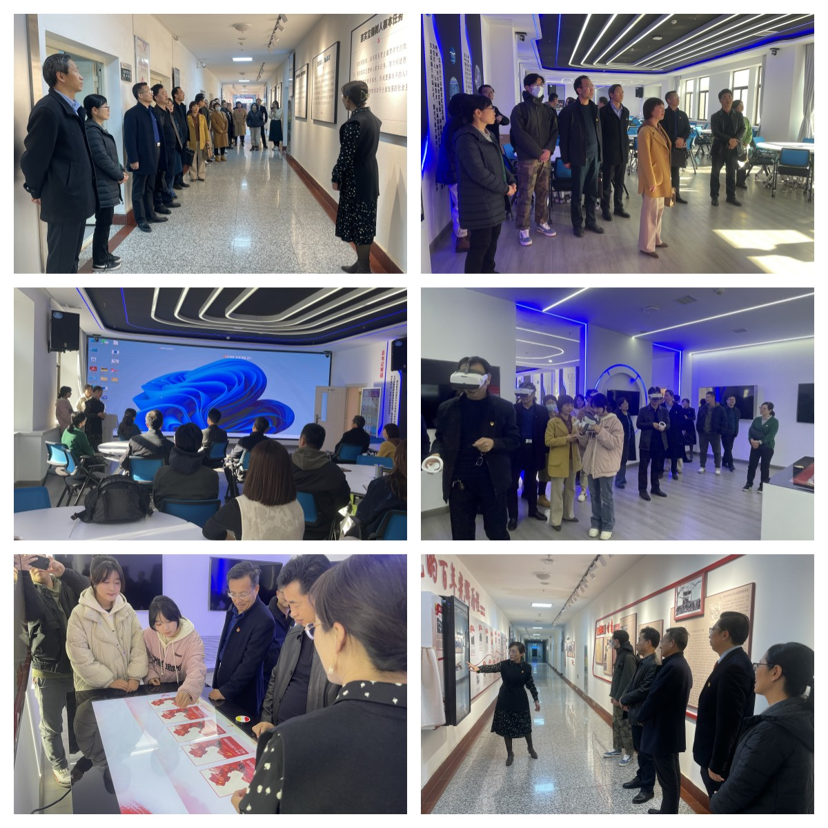 双方支部党员首先走进思政VR实验室参观了百年党史文化长廊、印说党史展览,重温了中国共产党的百年奋斗史,感悟习近平总书记的为民情怀。大家通过沉浸式体验,跟随镜头的变化,穿越时空传承红色基因,感受革命前辈的艰辛与坚持。