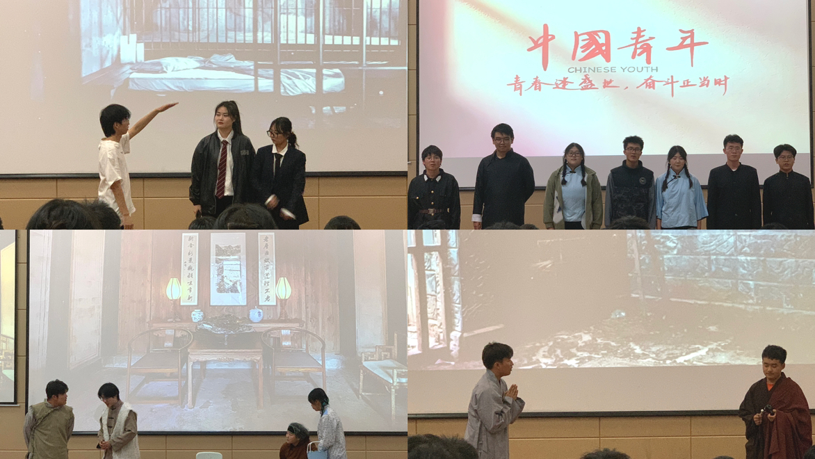 2021级戏剧影视文学班带来的开场话剧《从前有座山》,讲述了一个小和尚想要摆脱束缚,追求自由的故事,表演可圈可点,现场不时爆发出阵阵欢笑。2020级戏剧影视文学班的节目改编自经典话剧的《一个无政府主义者的死亡》,充分展现了同学们对艺术、人生和现实的思考,不论剧本改编还是表演形式都具有创新性。2022级同学的《活着》,改编自余华的小说,选择了原著中富有代表性的经典场景,展现了主人公坎坷的一生,表演生动,服化道精良,赢得了师生一致好评。2023级的新生也展示了精彩的表演,话剧《醒悟》传递了当代青年的使命感和责任感。