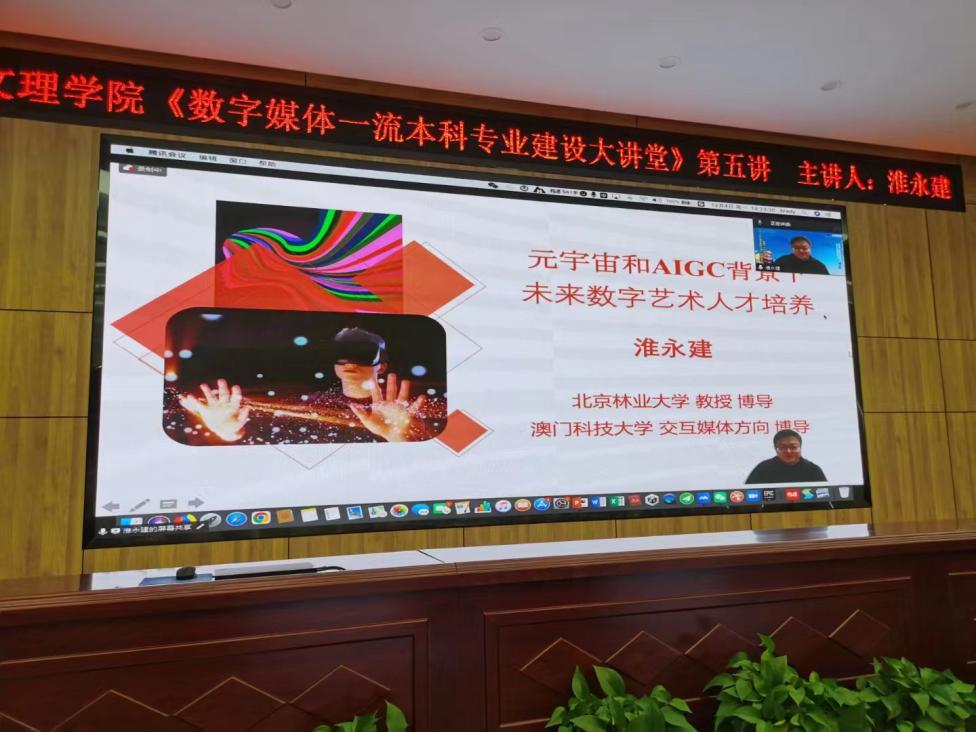 12月4日晚,数字媒体学院在文昌楼学术报告厅成功举办一流本科专业建设大讲坛第五讲,邀请北京林业大学院淮永建教授进行题为《元宇宙和Chat GPT背景下的数字艺术发展》的讲座。