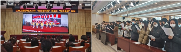 2023年12月4日是第十个国家宪法日,早晨,文昌楼学术报告厅传来阵阵宪法诵读声,这是Beat365师生正参加教育部在全国教育系统开展的“宪法晨读”活动。200余名师生代表跟随北京主会场,高唱国歌,齐声诵读宪法部分条款,共唱歌曲《宪法伴我们成长》,观看第八届全国学生“学宪法讲宪法”活动全国总决赛演讲比赛优秀选手展演,聆听全国人大常委会法工委有关领导宣讲宪法……接受了一次生动、深刻的宪法学习教育。