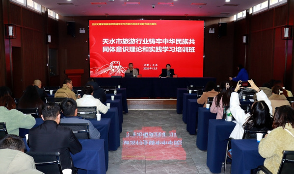 揭牌仪式后,教育培训基地组织了天水市旅游行业铸牢中华民族共同体意识理论培训。