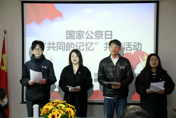 会上,全体党员为南京大屠杀三十万遇难同胞默哀三分钟,并一同观看了关于国家公祭日的宣传片,学生党员在现场进行了主题朗诵,牢记历史,缅怀同胞。
