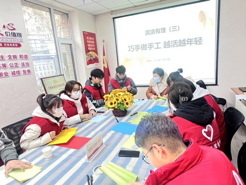 12月14日,化工学院党总支组织教工党员和学生志愿者到雁滨社区开展“双报到”活动。就深入开展“双报到”活动进行深度交流,共同开展“滨滨有理:巧手做手工,越活越年轻”共建活动。