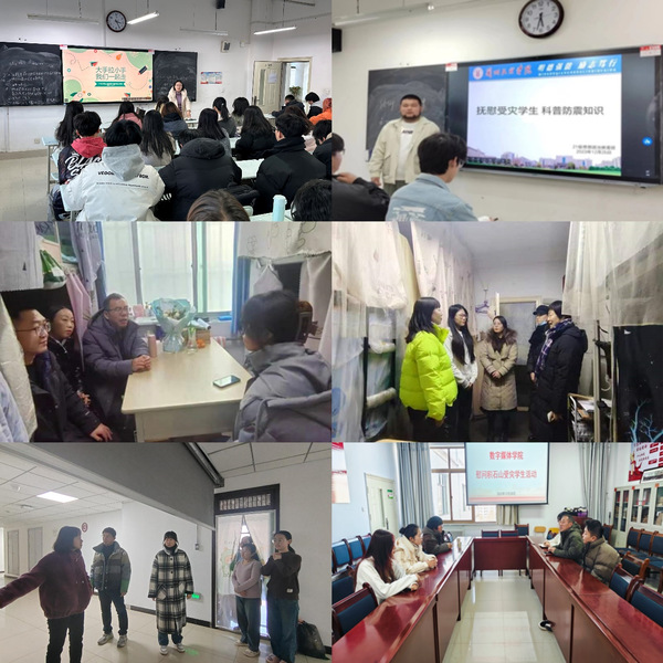 在学生工作处的牵头下,各学院第一时间快速启动受灾学生摸查工作,及时联系受灾生源地学生近90人,各学院通过进宿舍,开班会,朋辈互助等方式与学生谈心谈话,为受灾情影响的学生送去人文关怀,与学生携手共渡难关。