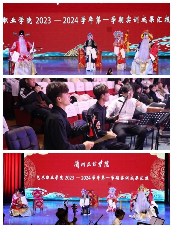 戏曲表演专业、舞蹈表演专业(敦煌舞方向)学生分别进行了实训教学成果展演,展示了实训内容。本次实训计划有序、汇报内容丰富、形式多样、扎实有效,有剧目创演、折子戏表演、乐队融合、快板表演,在教学创新手段上有思考,形成了独特的视觉效果,以此根植当代大学生传承、弘扬中华优秀传统文化的信心与决心,真正体现了“以演促教,演教结合”的教学特色。