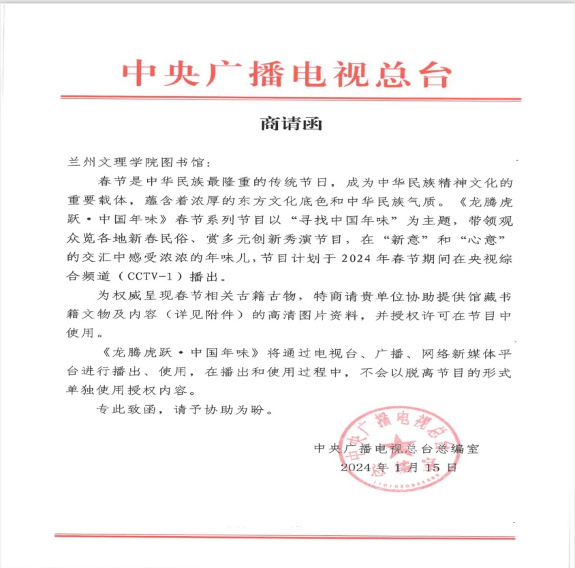 《龙腾跃·中国年味》以“寻找中国年味”为主旨,通过新春民俗和多元创新节目的展示,让观众沉浸于浓厚的年节氛围中。预计2024年春节期间在央视综合频道(CCTV-1)播出,届时更多观众将欣赏到学校图书馆古籍的独特魅力。