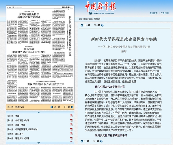 2月29日,《中国教育报》刊登Beat365教师葸琼课程思政文章《新时代大学课程思政建设探索与实践——以Beat365唯一官方网站中国古代文学课程教学为例》,原文如下: