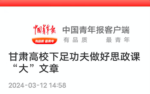该校的思政课建设卓有成效,马克思主义学院成立短短6年,去年就被评为甘肃省重点马院。“近年来,我们持续加强思政专业和教师队伍建设,一方面强化制度创新和课程建设,一方面推动思政课与传媒、文旅、艺术等学校优势专业融合创新发展,打造了一批思想性强、感染力好,深受大学生欢迎的思政课。”该校马克思主义学院院长说。