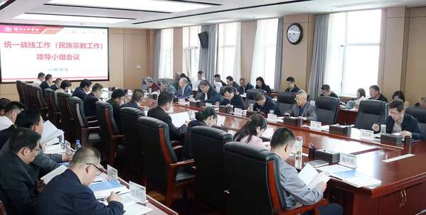 会议强调,高校是坚持党的领导的坚强阵地,是培养人才的主阵地,是意识形态斗争的前沿阵地,必须高度重视全力抓好意识形态工作。一要坚持不懈用习近平新时代中国特色社会主义思想凝心聚魂,认真贯彻落实习近平总书记关于意识形态工作的重要论述和相关会议精神,不断增强做好学校意识形态工作的政治自觉、思想自觉、行动自觉。二要落实立德树人根本任务,坚持以文化人、以文育人,大力推进“时代新人铸魂工程”和“大思政课”建设工程,不断加强马克思主义宗教观、民族宗教政策和铸牢中华民族共同体意识教育,努力培养更多有理想、敢担当、能吃苦、肯奋斗的新时代好青年。三要充分认识高校是培养选拔党外代表人士重要基地的地位作用,进一步加强和改进党外知识分子工作,加强思想政治教育和联系服务,引导他们自觉做党执政的坚定支持者、先进思想文化的积极传播者。四要落实意识形态工作责任制,不断加强“课堂教学、学术科研、文化活动、传统媒体、网络新媒体、群团组织、学生宿舍(公寓)”七个阵地的建设管理,防范化解各类风险隐患。五要坚持宗教与教育相分离原则,准确把握当前民族宗教工作面临的形势,绷紧“民族宗教无小事”这根弦,切实做好民族宗教各项工作,以铸牢中华民族共同体意识为主线推动学校民族宗教工作高质量发展。