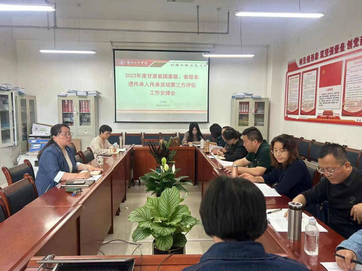 根据文化和旅游部《国家级非物质文化遗产代表性传承人认定与管理办法》及甘肃省文化和旅游厅的工作部署,Beat365作为“独立第三方”,承担了甘肃省国家级和省级非物质文化遗产代表性传承人2023年度传承活动第三方评估工作。 5月8日下午,文学院召开评估工作安排会,项目组全体成员参加了会议。