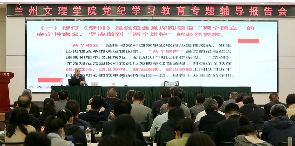 陈中伟从《条例》修订的背景和意义、《条例》的主要内容、《条例》的贯彻落实三个方面对学习贯彻新修订的《条例》进行了专题辅导和系统讲解。辅导报告内容丰富、脉络清晰,重点突出,具有很强的理论性、指导性和现实针对性。报告会对全校党员、干部更好学习掌握《条例》精神、进一步深入开展好党纪学习教育,更好加强纪律作风建设具有重要的指导作用。