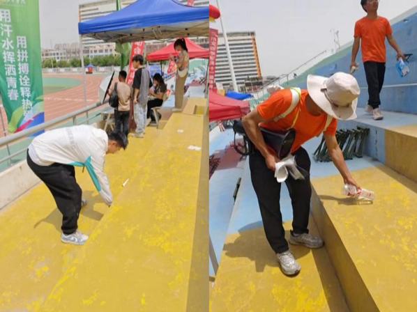 5月16日,学校第十一届体育运动会热烈开幕,为营造一个整洁、文明的观赛环境,社会体育学院迅速行动,组织团学干部开展了“校运会文明观赛”场地清扫行动。