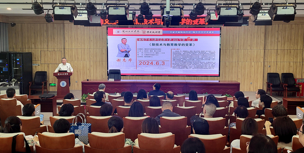6月3日上午,学校特邀北京工商大学原副校长、教育部高等学校专业设置与教学指导委员会委员谢志华教授在文昌楼303学术报告厅做题为《新技术与教育教学的变革》专题讲座。常务副校长王顶明,各二级学院教师代表170余人聆听了讲座。讲座由党委委员、副校长张焱主持。
