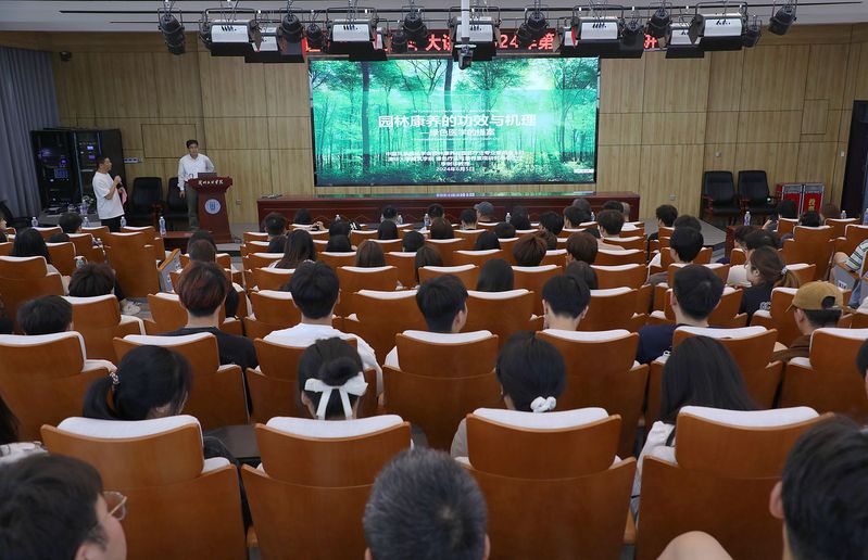 讲座中,李树华详细解读了园林康养在绿色医学与绿康城市建设中的重要作用,并通过丰富的案例和前沿研究成果,展示了园林康养在改善人居环境、促进身心健康方面的巨大潜力。讲座内容深入浅出,不仅拓宽了师生的学术视野,也引发了大家对城市可持续发展与绿色医学理念的深入思考。互动环节,李树华教授就师生的积极提问进行耐心解答,并分享了自己的研究心得和见解。现场气氛热烈,学术氛围浓厚。