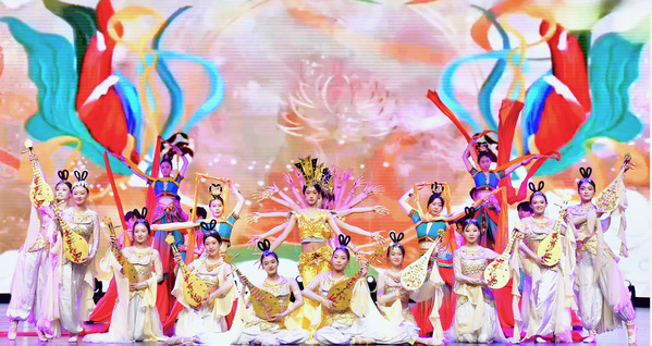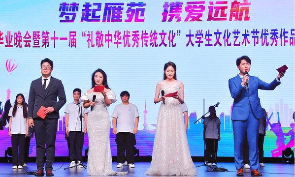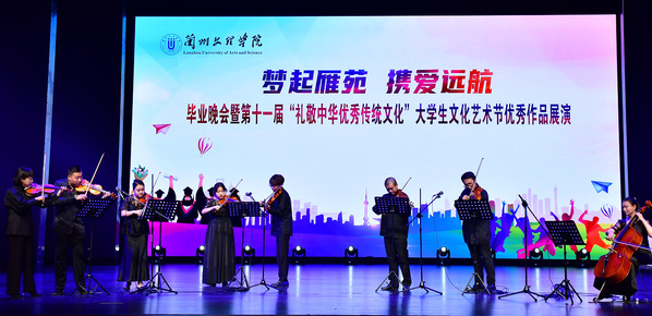 晚会演出了第十一届“礼敬中华优秀传统文化”大学生文化艺术节优秀作品。“经典甘肃”诗词咏诵《瓷韵归途窑心相传》展现了甘肃浓厚的地方优秀传统文化;敦煌舞《丝路绮梦》《霓裳华服一梦飞天》中婀娜曼妙的飞天、庄严威猛的金刚融合柔美与力量,美轮美奂;经典诵读《雪落在中国的土地上》《永远飘扬的红头巾》用直抵人心的朗诵表达出雁苑学子对祖国的热爱、对和平的颂扬。作为同学们入学后最早参与的品牌校园文化活动,大学生文化艺术节优秀作品展演把同学们的思绪带回到大学中丰富精彩的校园文化生活。毕业晚会在“雁苑青年”抖音号直播,1000余名同学线上观看。
