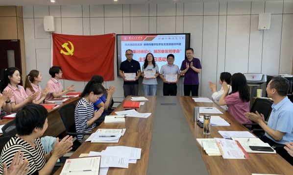 7月1日下午,机关第四党支部与新闻传播学院学生党支部开展“党旗飘扬映初心 踔厉奋发担使命”七一建党节主题党日暨支部结对共建活动。机关第四党支部全体党员、新闻传播学院党总支书记及学生党支部党员参加本次活动。