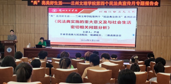 举办民法典宣传进校园主题讲座。邀请甘肃省高级人民法院民一庭三级高级法官芦晨来校举办宣传教育专题讲座,深入阐释了民法典对于社会生活的深远影响和重要意义,结合丰富的司法实践案例,生动形象地解读了民法典中与人们日常生活息息相关的诸多条款和规定,如物权、合同、婚姻家庭、侵权责任等方面。芦晨法官都用缜密的逻辑、鲜活的案例、理性的语言,让同学们更加深刻地认识到民法典与自己的生活息息相关,要学好用好民法典,让生活更美好。