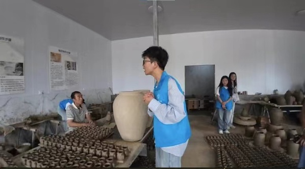传承非遗文化,体验粗陶工艺。陇南不仅盛产茶叶,同时也用粗陶制作的茶壶等器具来熬煮茶叶,别有一番风味。实践团队走访了沙坝镇两座粗陶窑厂,现场参观了粗陶的工艺制作,了解了当地茶文化衍生出来的重要文化载体,将在茶旅研学路线的设计中加入粗陶制作手工体验课,充分发挥当地非遗文化资源优势,积极推动中华优秀传统技艺发展。