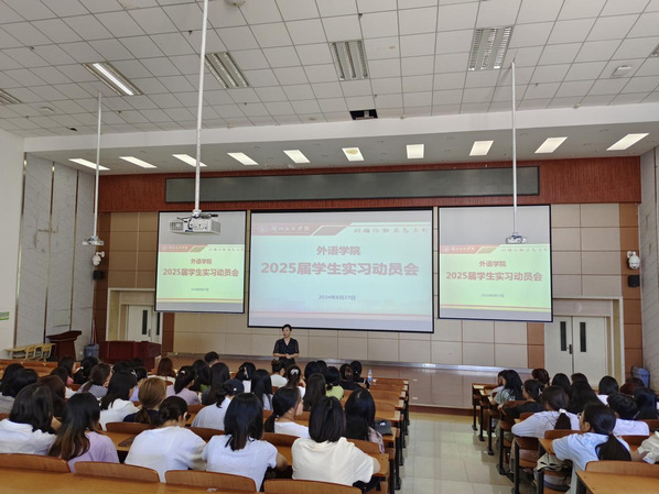 为了加强2025届毕业生实习教学管理,确保实习质量,8月27日,外语学院在致远楼5-205教室开展了2025届毕业生实习动员大会。