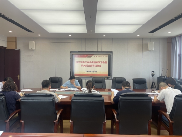 9月2日上午,机关党委在文昌楼1121会议室召开党的二十届三中全会精神学习会暨机关党支部书记例会,机关党委委员、机关各党支部书记参加,机关党委书记主持。