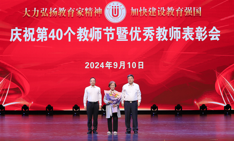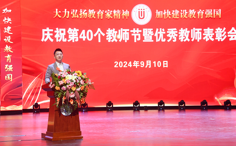 苟永平代表校党委致词,向全体教职员工致以节日的问候,向受到表彰的先进个人和集体表示祝贺,向广大教师的默默奉献、辛勤付出表示感谢。苟永平强调,教师是立教之本、兴教之源。新时代新征程,党和国家将尊师重教上升到前所未有的高度。广大教师要牢记习近平总书记嘱托,自觉履行“躬耕教坛、强国有我”的庄严承诺,以辛安亭等老一辈人民教育家为榜样,在教书育人、爱岗敬业中弘扬和践行教育家精神。要坚守为师之道,用习近平新时代中国特色社会主义思想凝心铸魂;要涵养为师之德,带头践行社会主义核心价值观;要磨练为师之艺,用爱点亮每一个心灵;要强化为师之能,让学生从每一堂课中都能感受到知识和思想的力量。