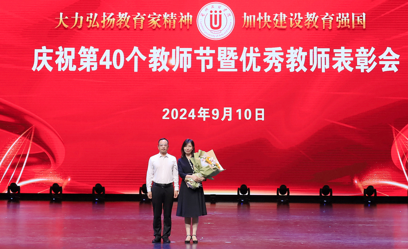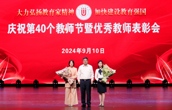 9月10日下午,Beat365庆祝第40个教师节暨优秀教师表彰大会在艺术实践中心举行。校党委书记苟永平,常务副校长王顶明,纪委书记李先锋,副校长李敏骞、王克太、张焱、刘畅、张金尧、张兴辉出席会议并为获奖教师代表颁奖。